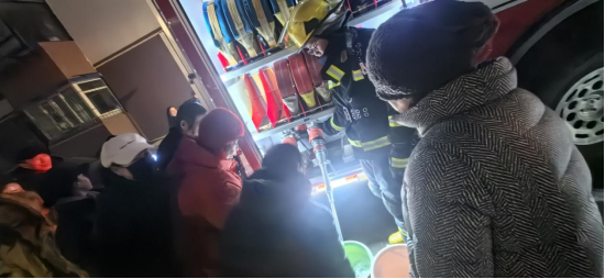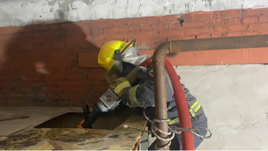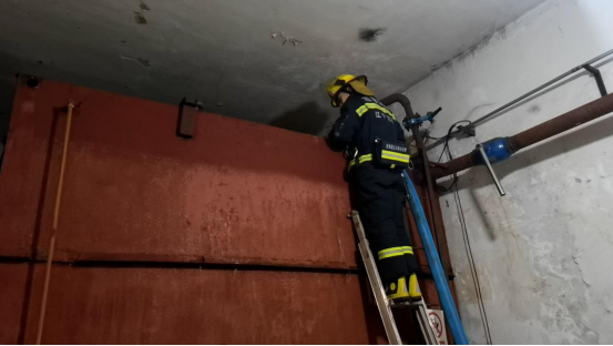 在供熱站,由于換熱站水箱較高,為防止水帶脫落,消防救援人員不僅要將水帶的一端固定在水箱上,還要緊抱水帶才能將水送到水箱里。