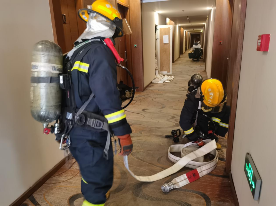 消防救援人員通過模擬火情現場,鍛煉隊伍滅火救援實戰能力和整體作戰能力,并在過程中加強了對場所建筑結構、功能分區、道路水源、消防安全管理等情況的熟悉程度,實地勘察了重點部位、疏散通道、固定消防設施等情況。
