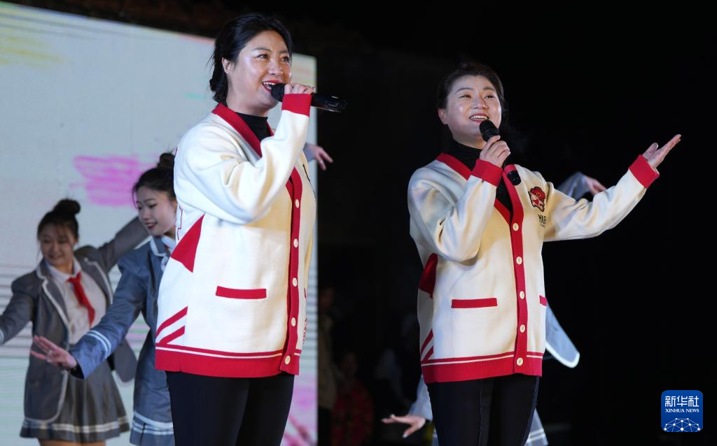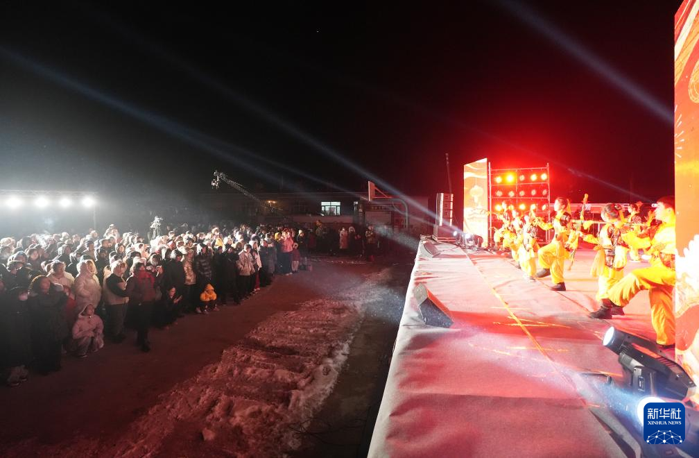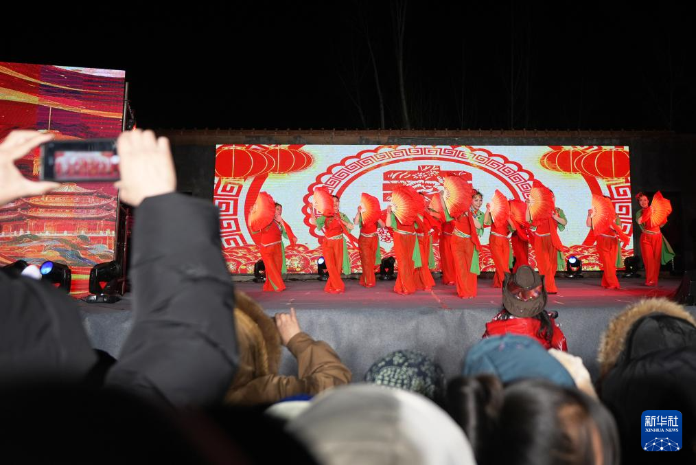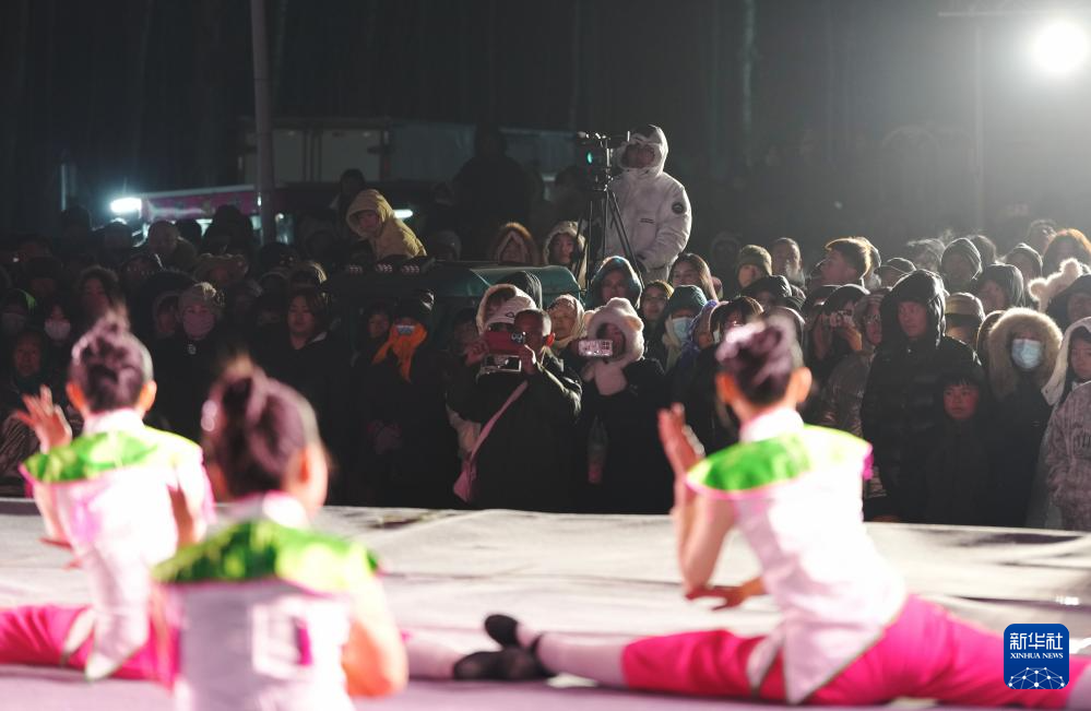 在遼寧省朝陽市朝陽縣北四家子鄉唐杖子村,演員在“村晚”上表演(2月2日攝)。