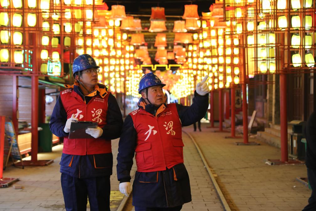 “燈會的花燈一般是晚上5點半左右點亮,我們大概4點就要到現場,每晚要工作5小時左右?!睏钣罱榻B,他們采用“人巡+機巡”的方式加強對10千伏湖東線、10千伏棋上線以及棋盤山關東影視城內的高低壓線路和設備開展巡檢、測溫,做到保電范圍無死角、全覆蓋,確保電力安全可靠供應。