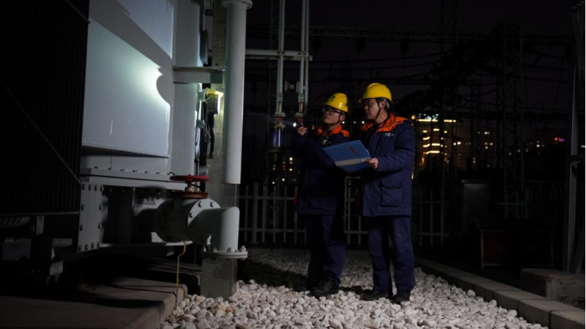 2月11日,變電運行工區員工張宏波、張鑫對六家子220千伏變電站進行特巡。