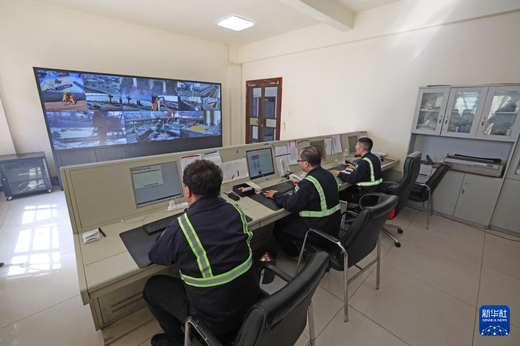 2月18日,在遼港控股(營口)有限公司糧食分公司,工作人員在調度室查看泊位監控。