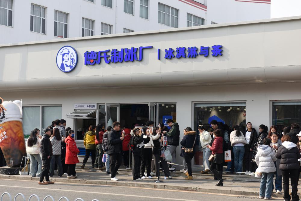 新華網沈陽3月1日電(記者于也童、洪可潤)早上不到8點,位于沈陽市沈河區的德氏制冰廠門前,已經有消費者排起了長隊?!疤匾庠缙饋砼抨犢徺I,就為了吃上這個冰淇淋,好看又好吃!”趁著店鋪剛剛開門,沈陽姑娘孫娜英手拿著冰淇淋在店門口標志性的11米的“城市地標甜筒”雕塑前合影留念。