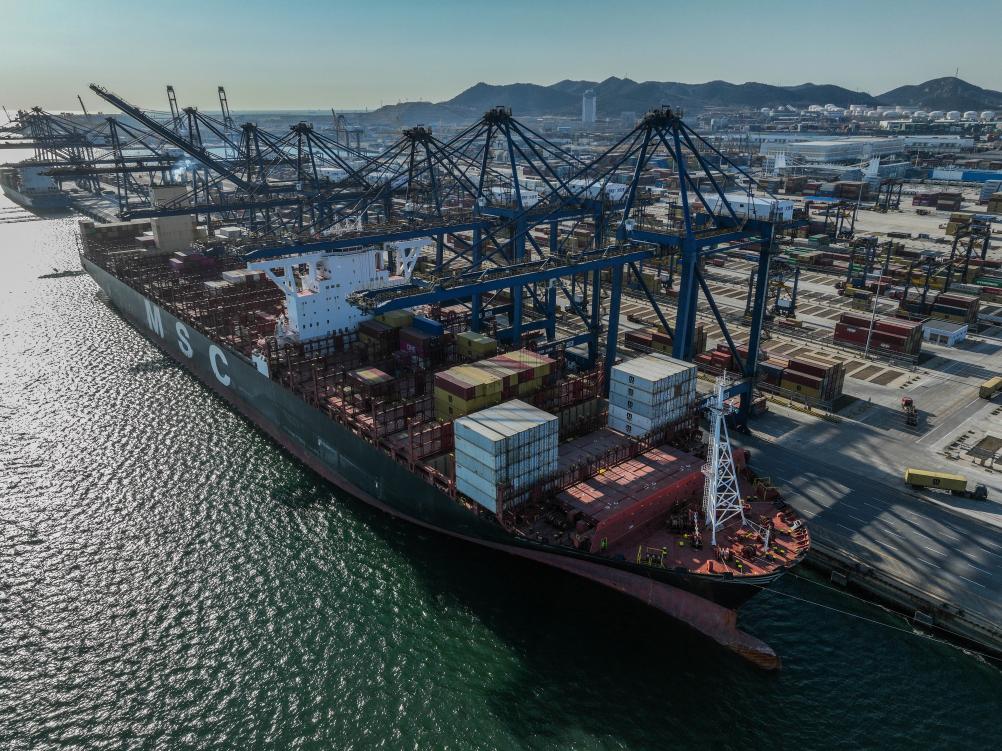 “這是全球運力第一的地中海航運公司的貨輪,裝載的化工品、汽車零部件、機電產品等貨物,將從這里運往海外?!边|寧港口集團大連集裝箱碼頭有限公司市場部副經理周金鹿說。