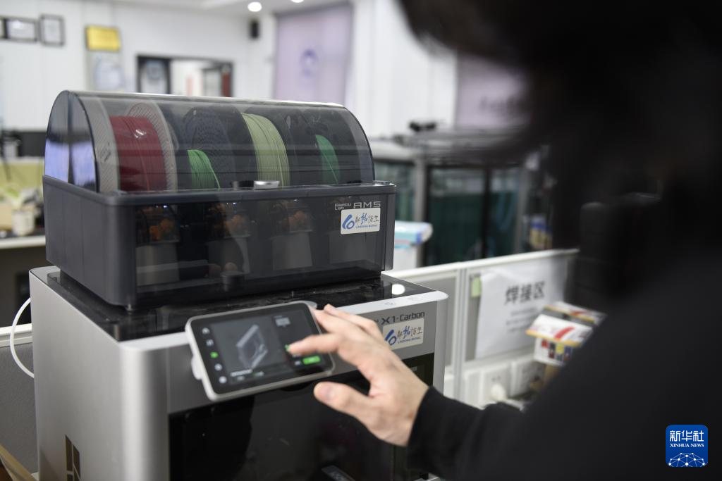 3月18日,工作人員在沈陽粼動仿生科技有限公司內操作3D打印機。新華社記者 吳青昊 攝