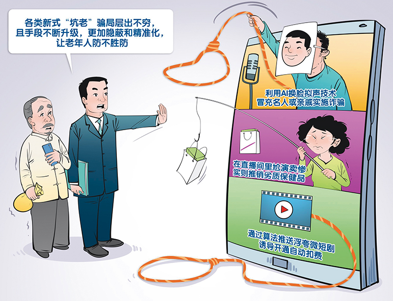 當前,一些不法分子編織的“投資返現”、“權威”背書、熟人拉攏“坑老連環套”在網絡助力下更具欺騙性和傳播效能,讓一些老年人防不勝防。