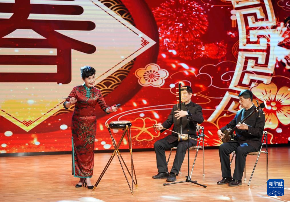 3月26日,張艷英(左)表演東北大鼓《小拜年》。新華社記者 吳青昊 攝