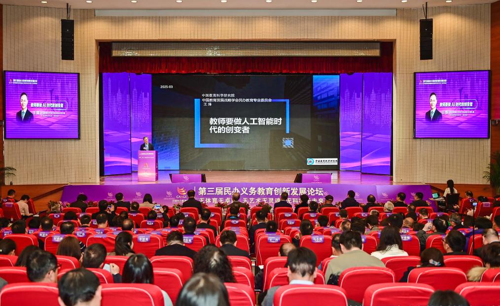 在主旨報告環節,中國科學院院士汪景琇以《培養杰出人才,建設科技強國》為題,強調科技創新與基礎教育深度融合的重要性;中國民辦教育協會常務副會長、長三角教育發展研究院院長胡衛以《教育的多樣化應對外部環境的深刻變化》為題,探討民辦教育在復雜環境中的應對策略;中國教育科學研究院教育體制機制改革研究所所長王烽在《教師要做AI時代的創變者》中提出人工智能時代教師角色轉型的路徑;遼寧省民辦教育協會會長白瑋以《面向建設教育強國的中小學藝術教育》為題,呼吁加強藝術教育在人才培養中的核心地位。