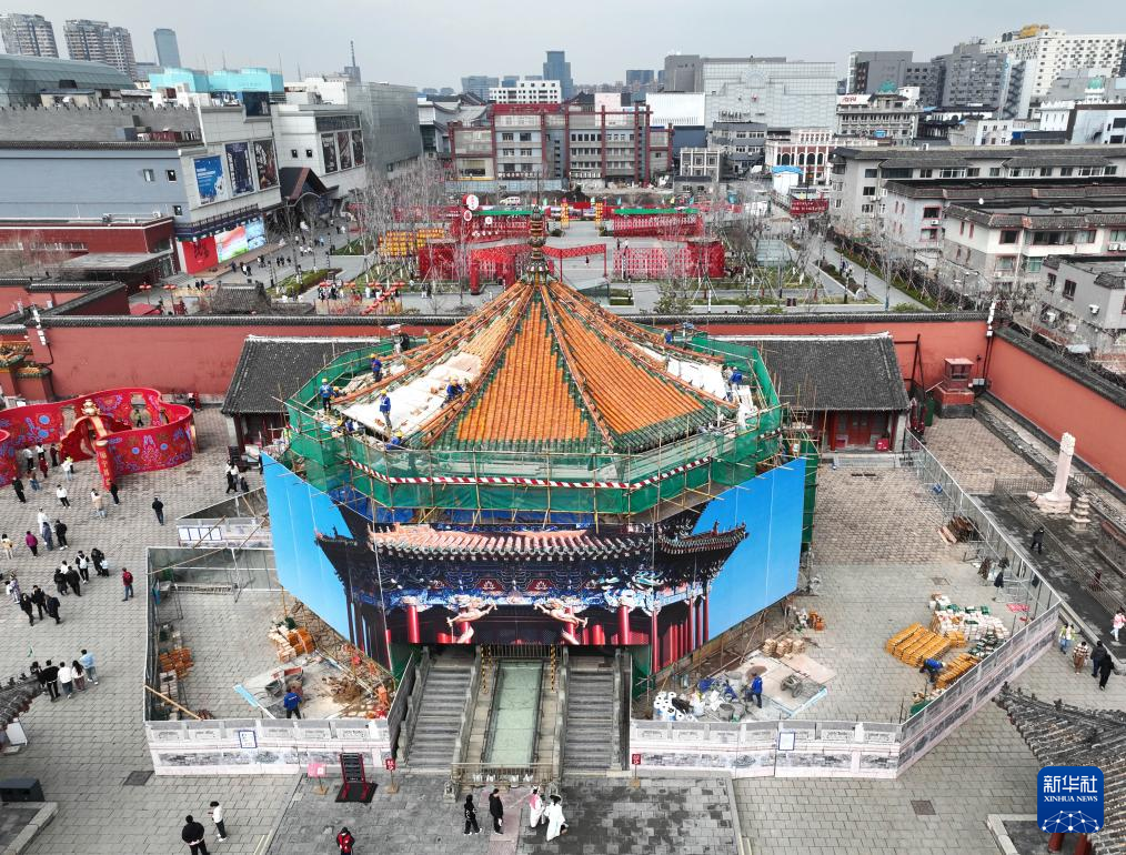 這是4月6日拍攝的保養維護中的沈陽故宮大政殿(無人機照片)。