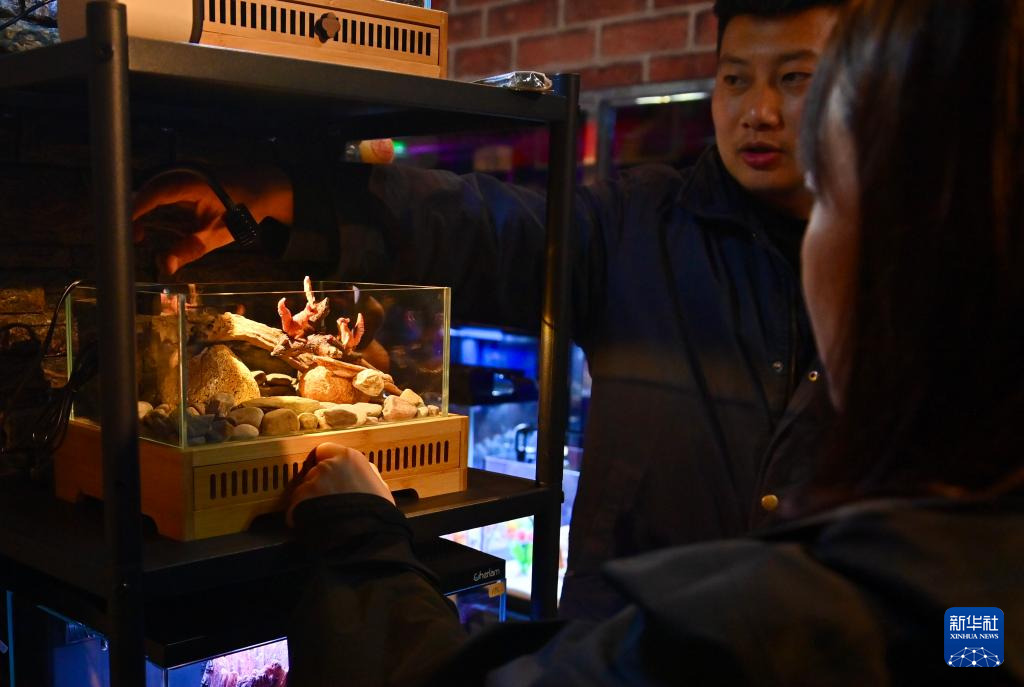 4月10日,顧客在鞍山三臺子觀賞魚交易中心選購觀賞魚。