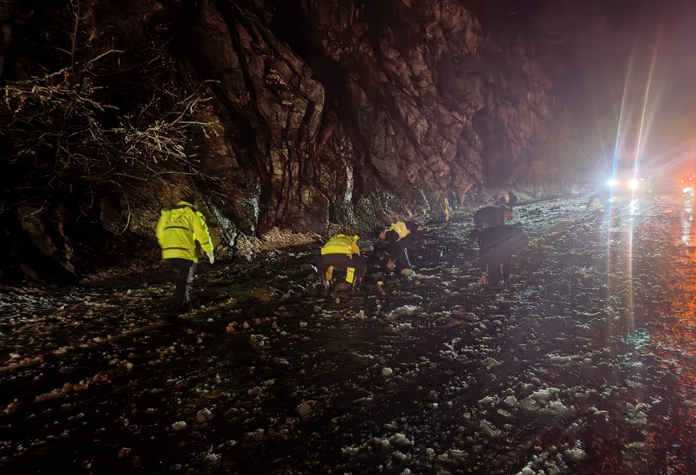 寬甸地區公安、住建等部門工作人員正在連夜清理降雪路面。(受訪者供圖)