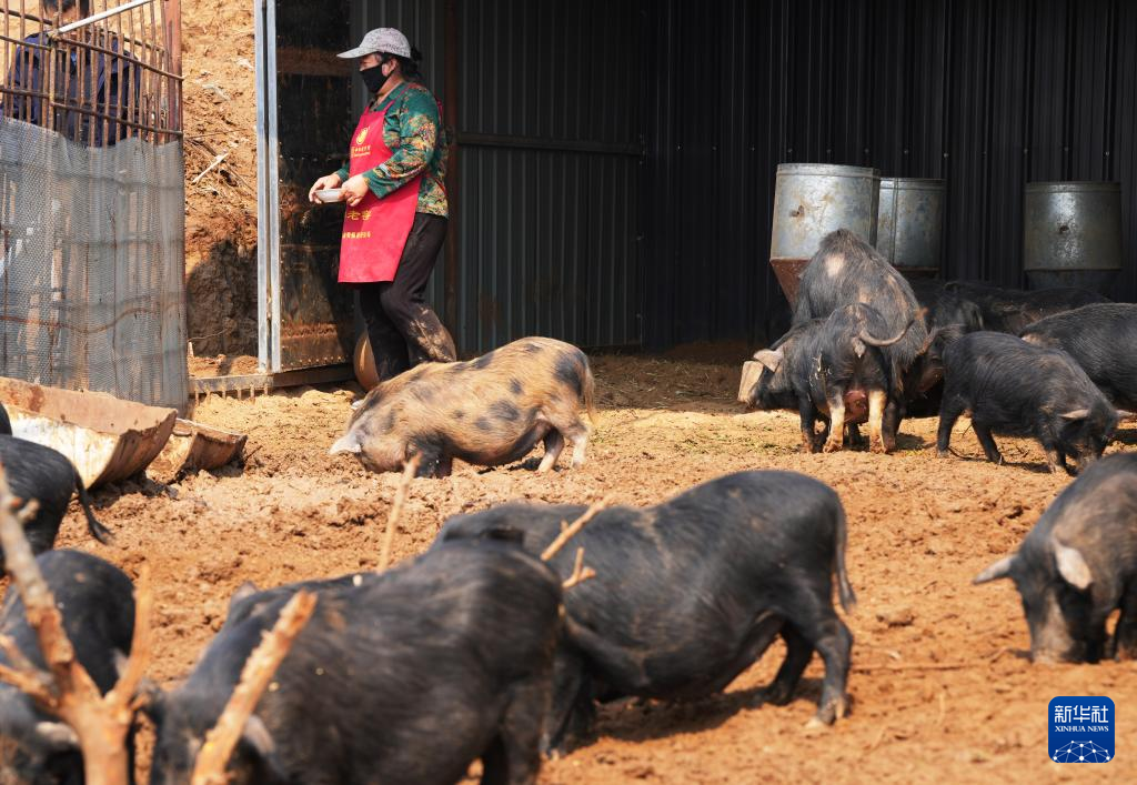 這是遼寧省阜新蒙古族自治縣于寺鎮官營子村村民養殖的藏香豬(4月15日攝)。
