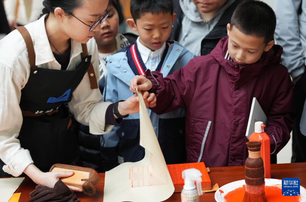4月19日,讀者在遼寧省圖書館現場體驗雕版印刷。