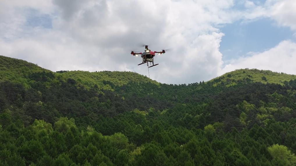 5月6日,遼寧省海城市森林專業撲火隊利用伊娃云智照明無人機在一處林場進行照明作業。