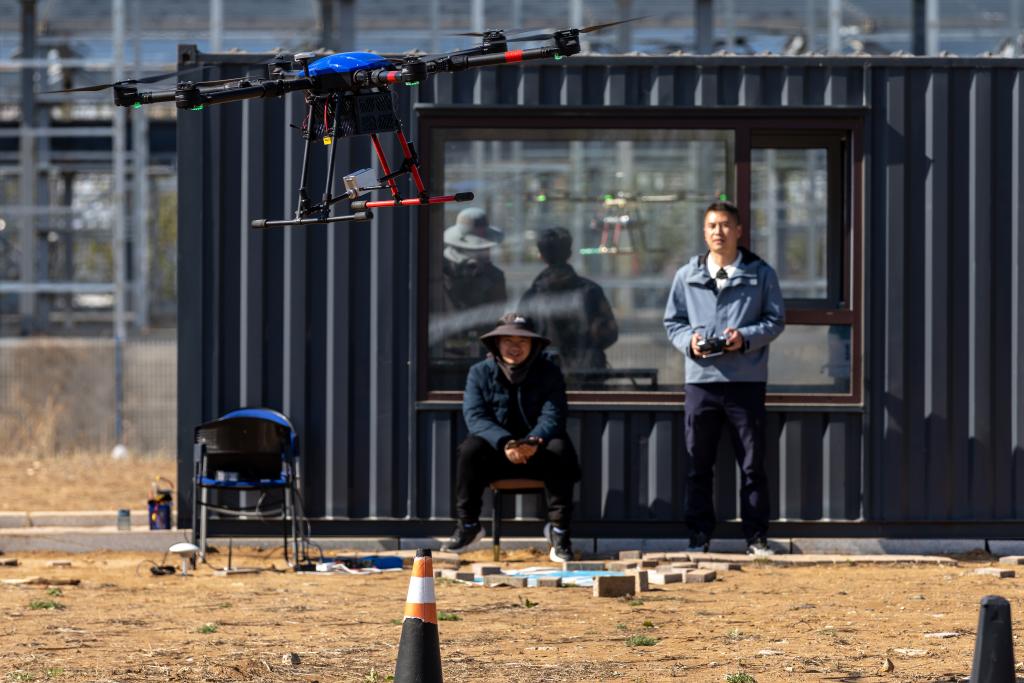 4月25日,在遼寧省沈陽市沈北新區,學員在遼寧眾飛科技有限公司進行無人機飛行實操訓練。