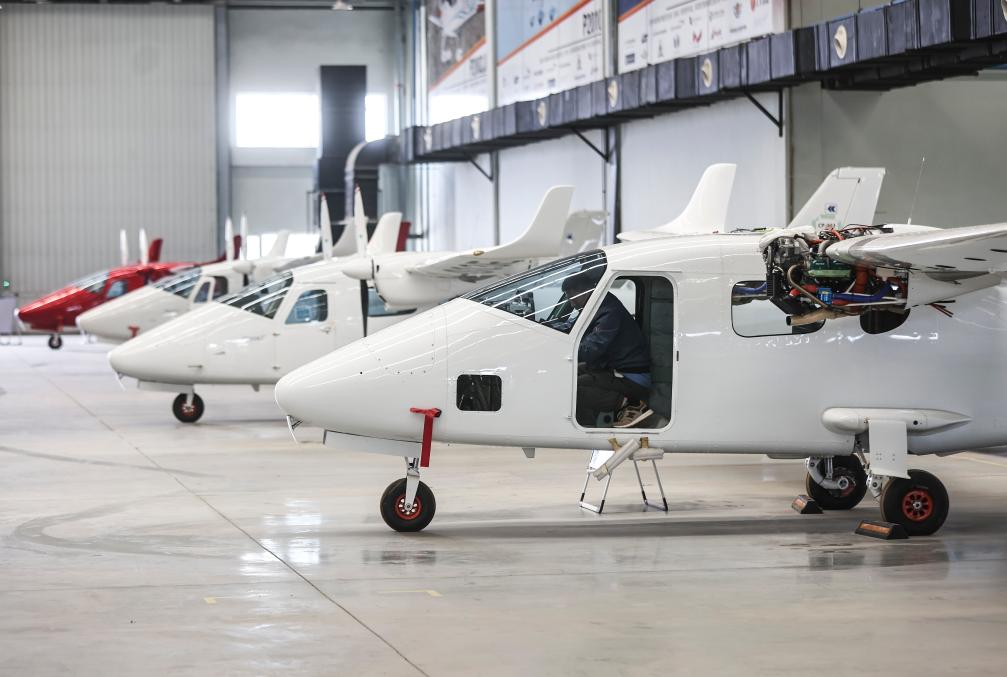 在沈陽的遼寧銳翔通用飛機制造有限公司,工人在組裝飛機(2024年5月13日攝)。