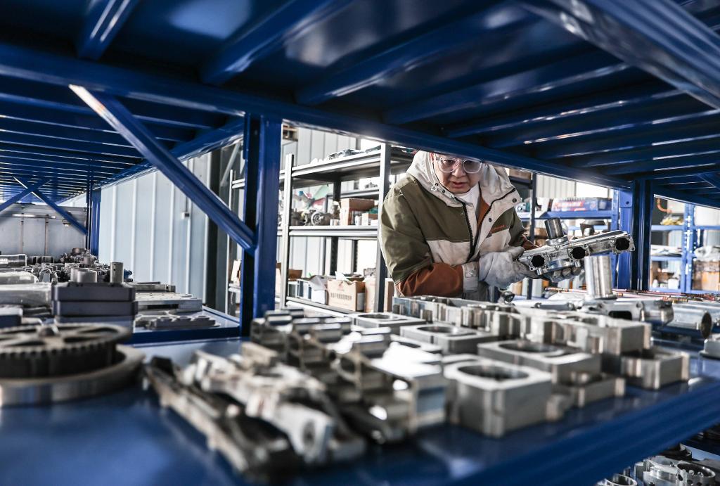 4月25日,在遼寧省沈陽市法庫縣,工程師在法庫中軍翼無人機科技有限公司的研發組裝車間清點無人機配件。