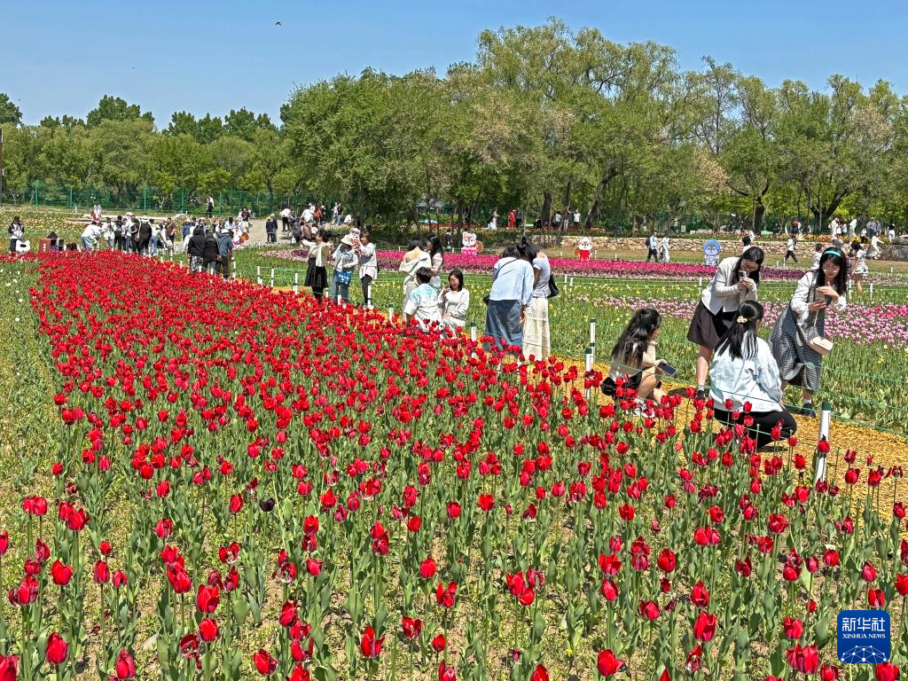 5月11日,市民在沈陽市北陵公園賞花。