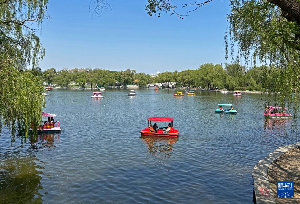 5月11日,市民在沈陽市北陵公園劃船。