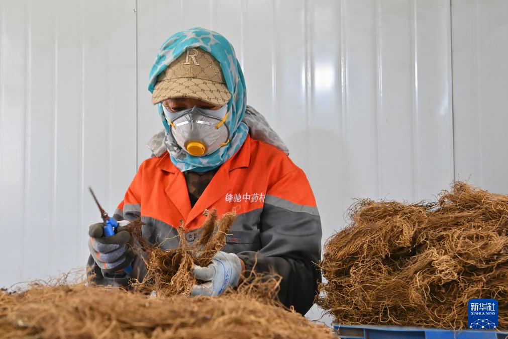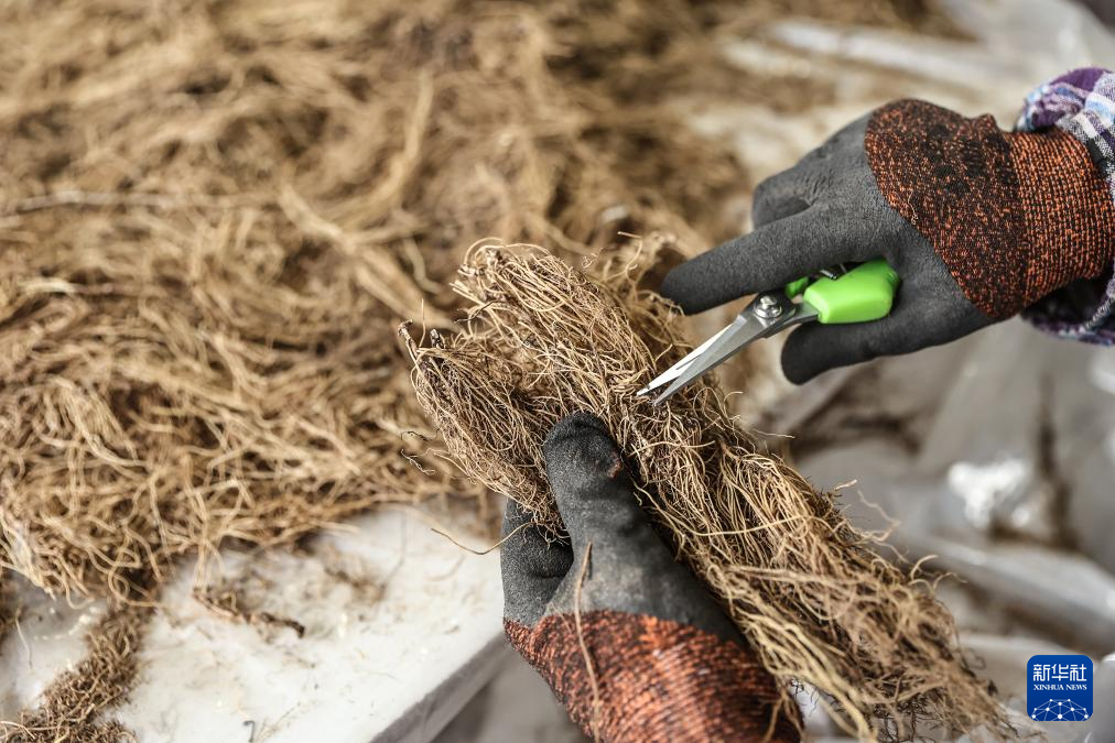 5月14日,在遼寧省撫順市新賓滿族自治縣,一家生產遼細辛企業的工作人員在生產車間內加工遼細辛。
