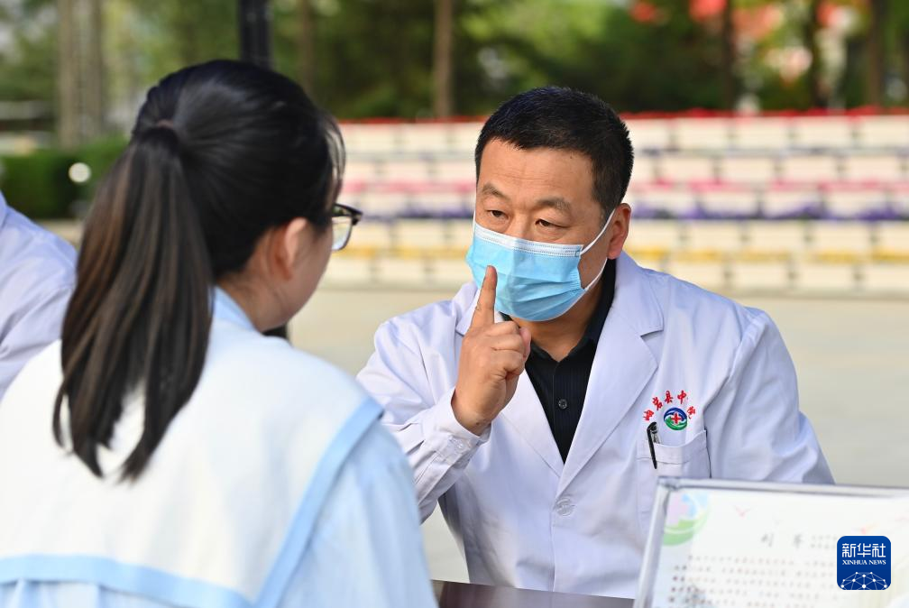 5月29日,在岫巖縣中醫藥文化夜市現場,醫生為市民義診。