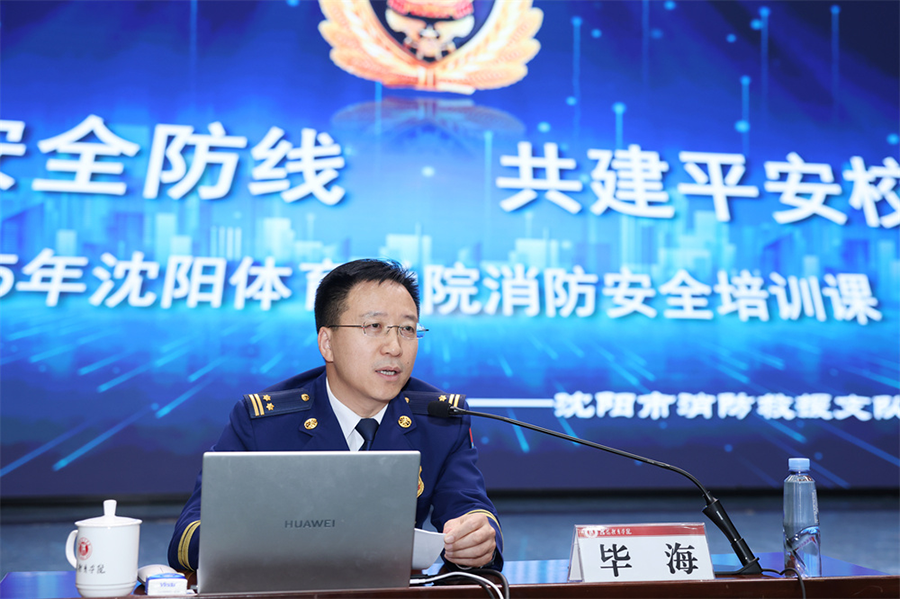 沈陽市消防救援支隊政治部主任畢海走進沈陽體育學院,系統講解了校園火災風險特點,強調校方必須壓實主體責任,確保校園環境安全。