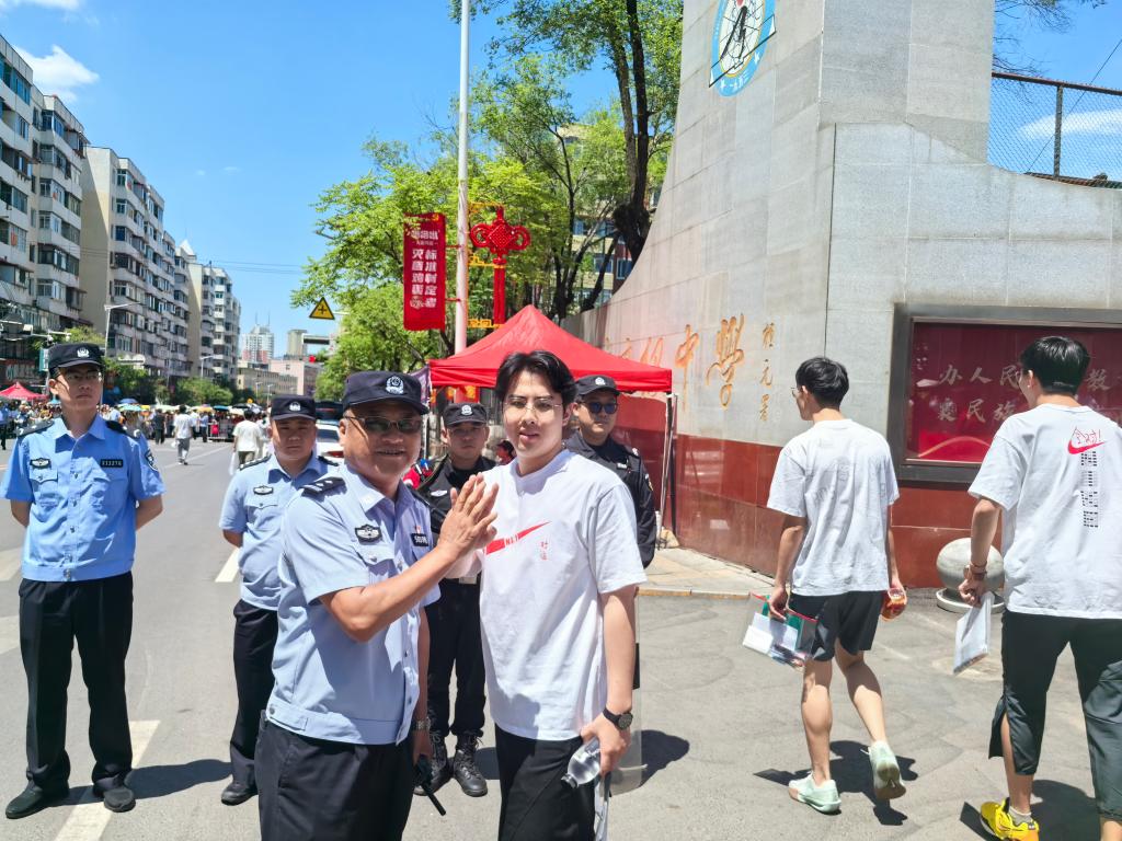 本溪市第一中學考場外,本溪市明山公安分局新明派出所民警鄧羽杰第一次參加高考護考工作,也是第一次以“守護者”的身份重返校園。作為護航高考隊伍“藏藍力量”中的一員,他深感肩上沉甸甸的責任。