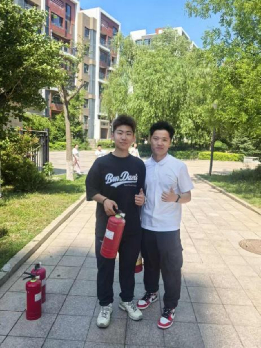 近日,沈陽理工大學北門外一棟居民樓的空調外機突然躥出火苗,正在返校途中的理學院學生張旭東、羅鑫宇、孫佳琦第一時間察覺到異常,并迅速展開應急處置。三名學生冷靜應對,孫佳琦迅速撥打119報警,告知樓棟位置和周邊路況;張旭東和羅鑫宇則奔向小區門衛室通知物業人員,并從消防器材柜中取出滅火器。憑借此前在消防培訓中學到的技能,他們站在上風方向,保持安全距離,對準火焰根部噴射,迅速壓制了火勢蔓延,為消防救援爭取了寶貴時間。消防員到場后,迅速展開全面檢查和處理,最終成功撲滅火災。