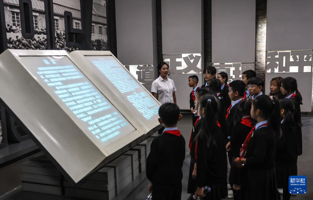 6月10日,撫順市實驗小學學生在撫順戰犯管理所舊址陳列館內參觀。
