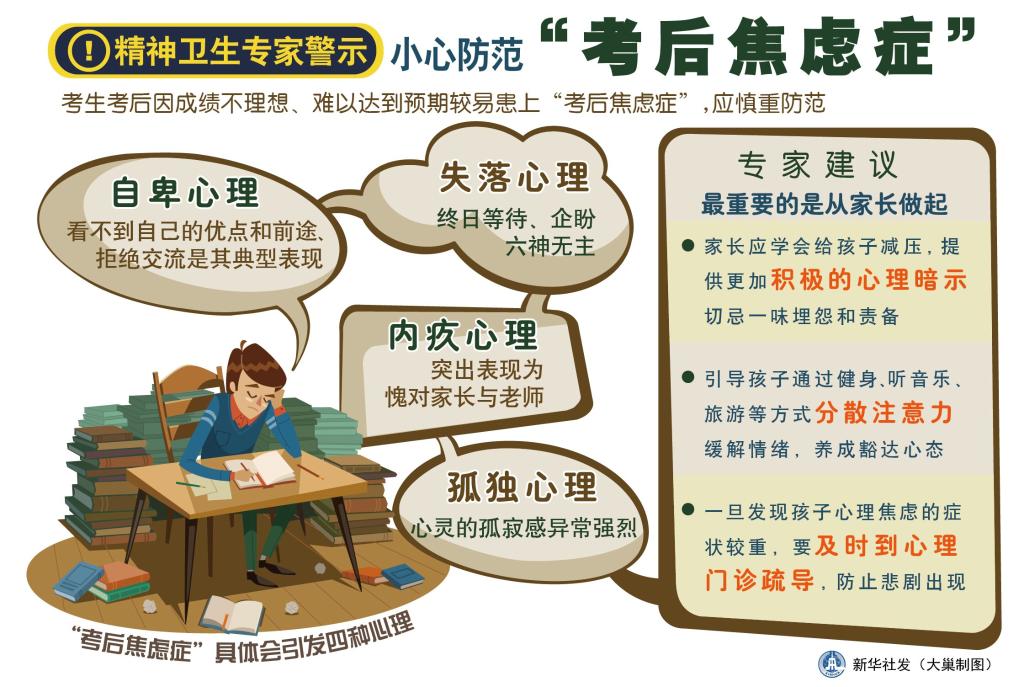 據有關心理咨詢數據顯示,考后兩周是心理問題高發期??己髩毫E減、對分數的焦灼等待疊加,容易讓考生患上多種“高考后遺癥”。