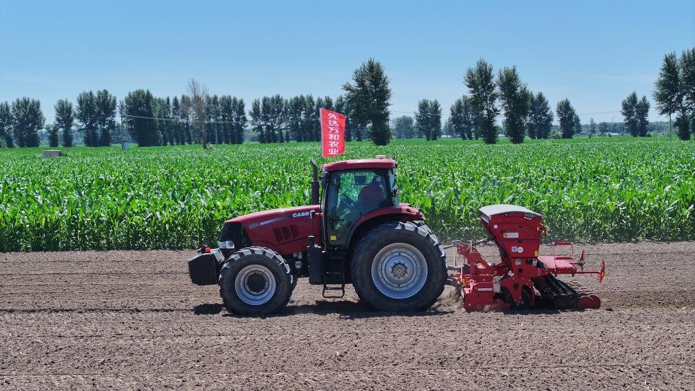 7月7日,在遼寧省阜新市彰武縣,播種機在播種大豆。(受訪者供圖)