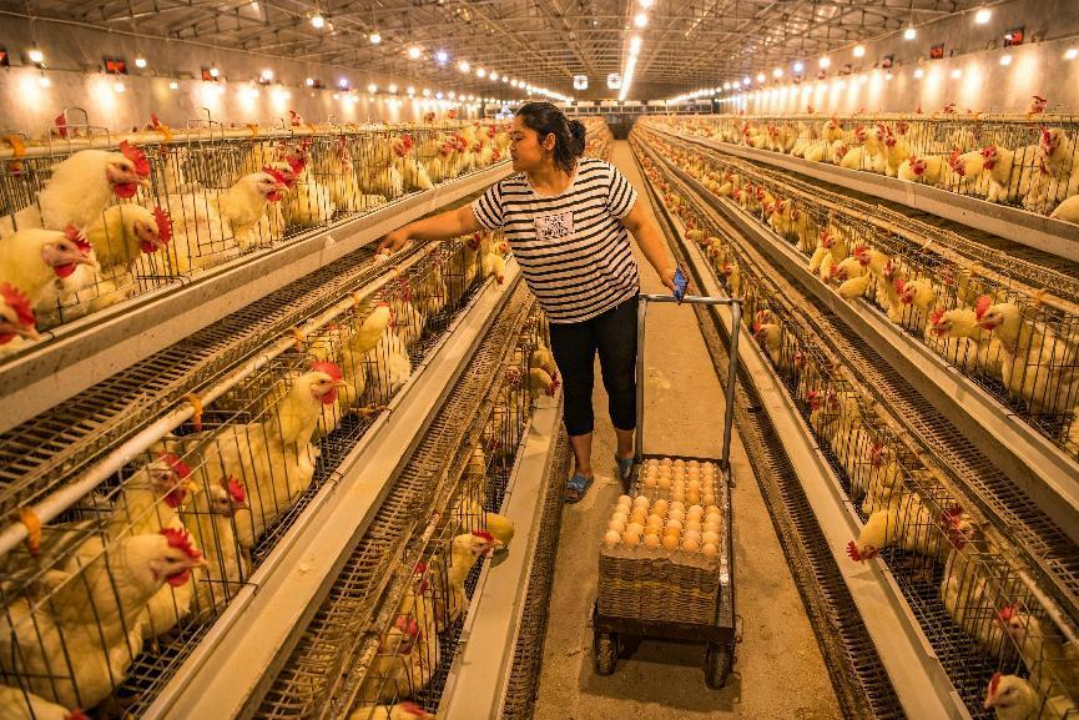 農民在養雞場收獲雞蛋。新華網發(李永宏攝)