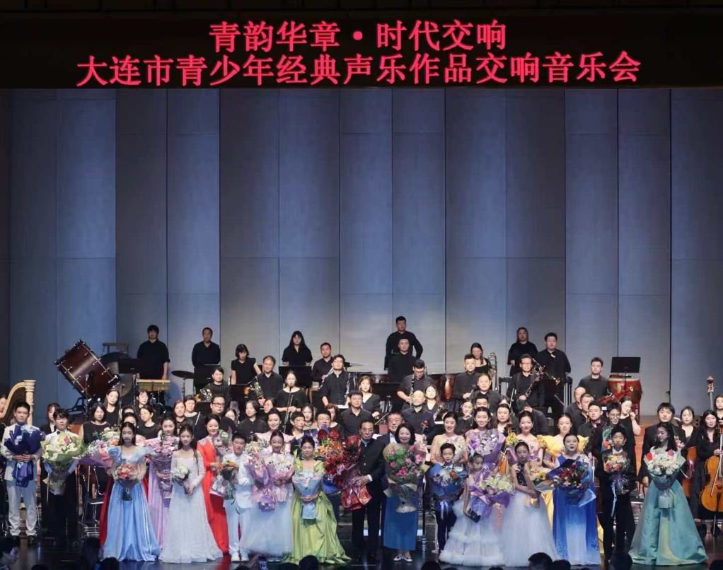 新華網沈陽8月10日電 由大連大學主辦的“青韻華章·時代交響”大連市青少年經典聲樂作品交響音樂會近日在大連大劇院圓滿落幕。本次音樂會以“銘記歷史·奮進復興”為歷史背景,在指揮家杜明的執棒下,大連城市國際交響樂團、大連大學交響樂團聯袂大連優秀青少年聲樂歌者為觀眾呈現了一場融藝術性、思想性和時代性于一體的音樂盛宴。