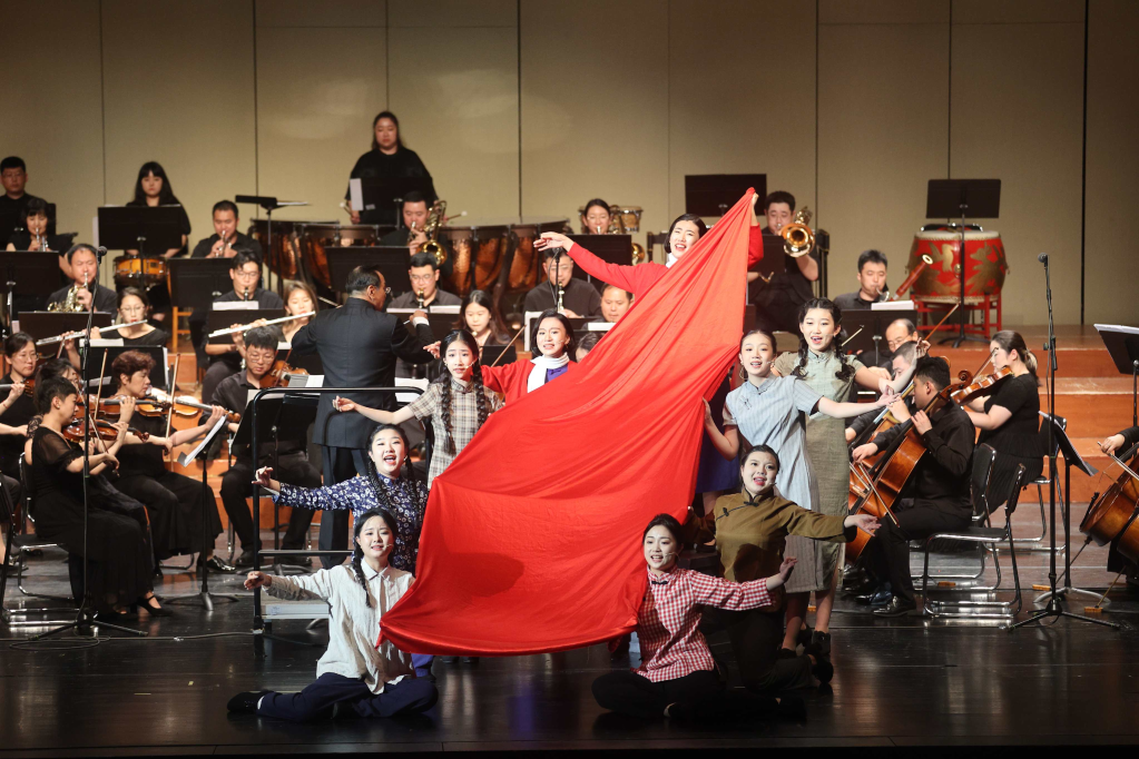 本場音樂會分為上下兩個半場。上半場演員們演唱了《巴山蜀水要解放》《我為共產主義把青春貢獻》《繡紅旗》《紅梅贊》等紅色經典曲目,青少年們用青春之聲詮釋紅色經典歌劇,讓革命精神煥發出新時代的光彩。