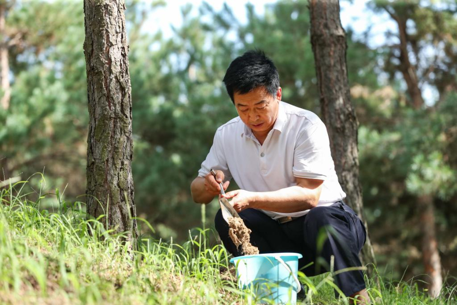 梁春榮在樹林中尋找適合入藥的硅砂。新華社記者 龍雷 攝