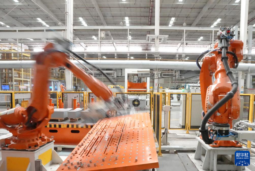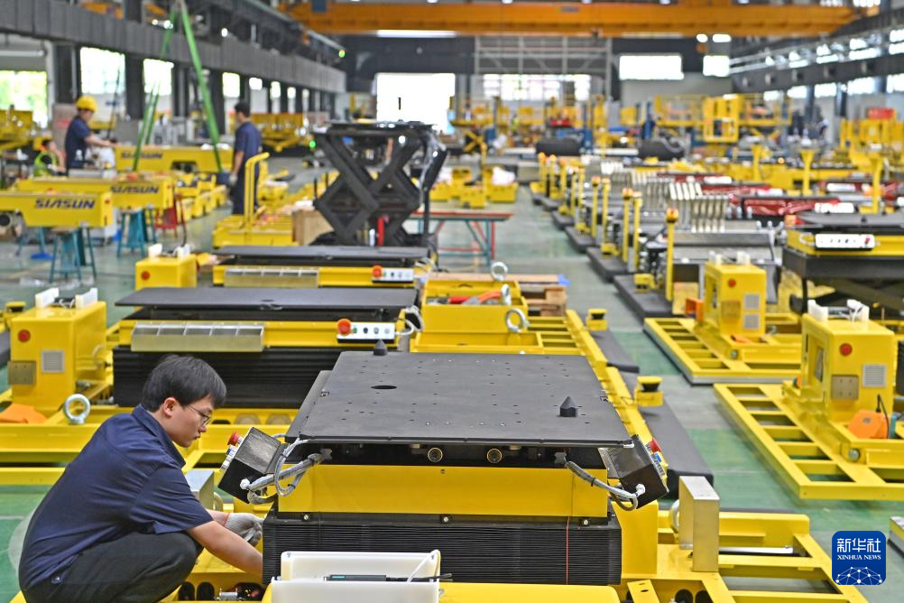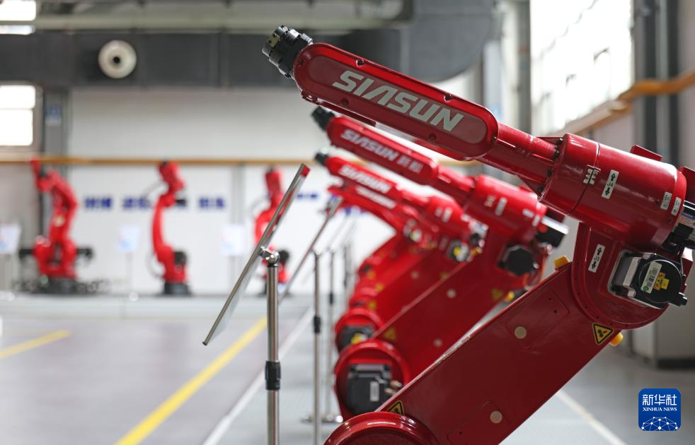 這是8月27日在新松機器人自動化股份有限公司車間拍攝的工業機器人。