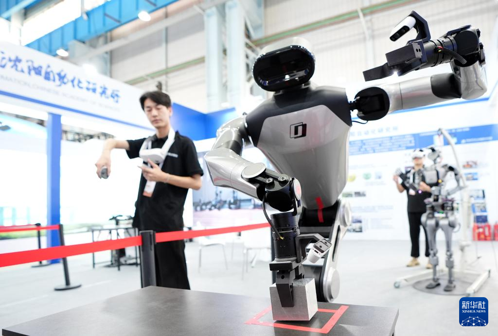 9月5日,在沈陽的2025全球工業互聯網大會的展覽區現場,中國科學院沈陽自動化研究所的機器人工程師在調試具身智能操作系統。