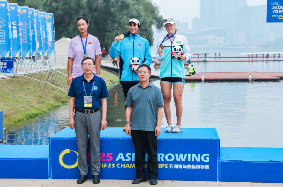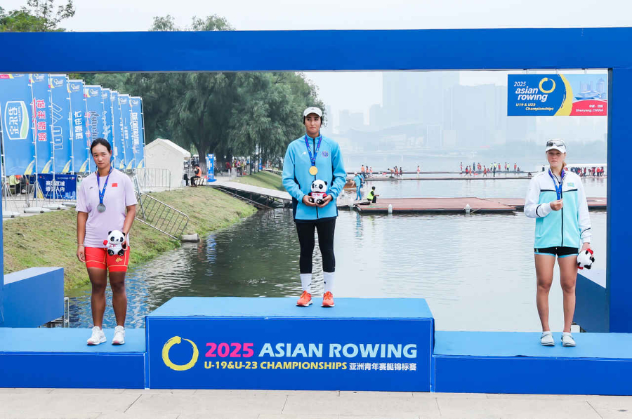 2025亞洲青年賽艇錦標賽U19女子單人雙槳比賽頒獎儀式,中國隊獲得銀牌。