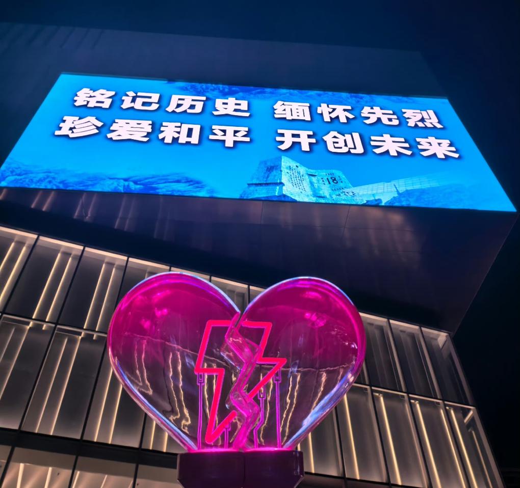 9月17日,沈陽一處戶外大屏打出“銘記歷史 緬懷先烈”等字樣。新華社記者劉藝淳 攝