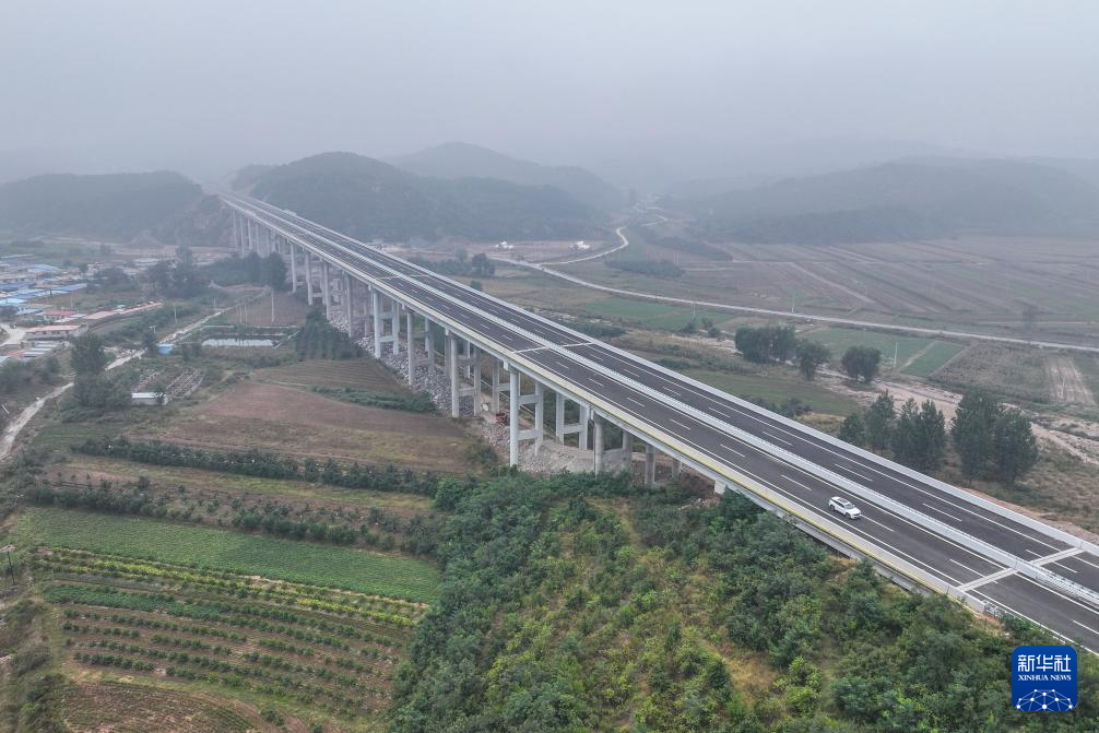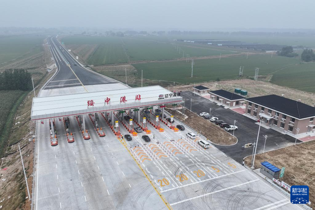9月27日,車輛從凌綏高速綏中港站收費口進入高速公路(無人機照片)。