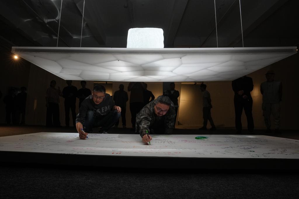 9月29日,觀眾在展覽現場留言。新華社記者 潘昱龍 攝