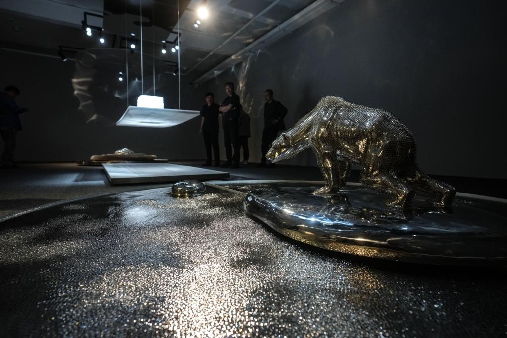 新華網沈陽9月30日電(記者潘昱龍)29日,一場名為“冰的記憶”裝置藝術展在沈陽市紅梅文創園發酵藝術中心開展。本次展出的裝置藝術品由中國美術家協會理事、遼寧省美術家協會副主席、藝術家解勇設計制作。展品包括三組裝置,通過裝置震動、冰水溶解觀眾留言等藝術化的表達方式,旨在喚起觀眾對環境問題的關注。展覽將持續到11月16日,其間還將舉辦氣候工作坊與藝術對談等活動。