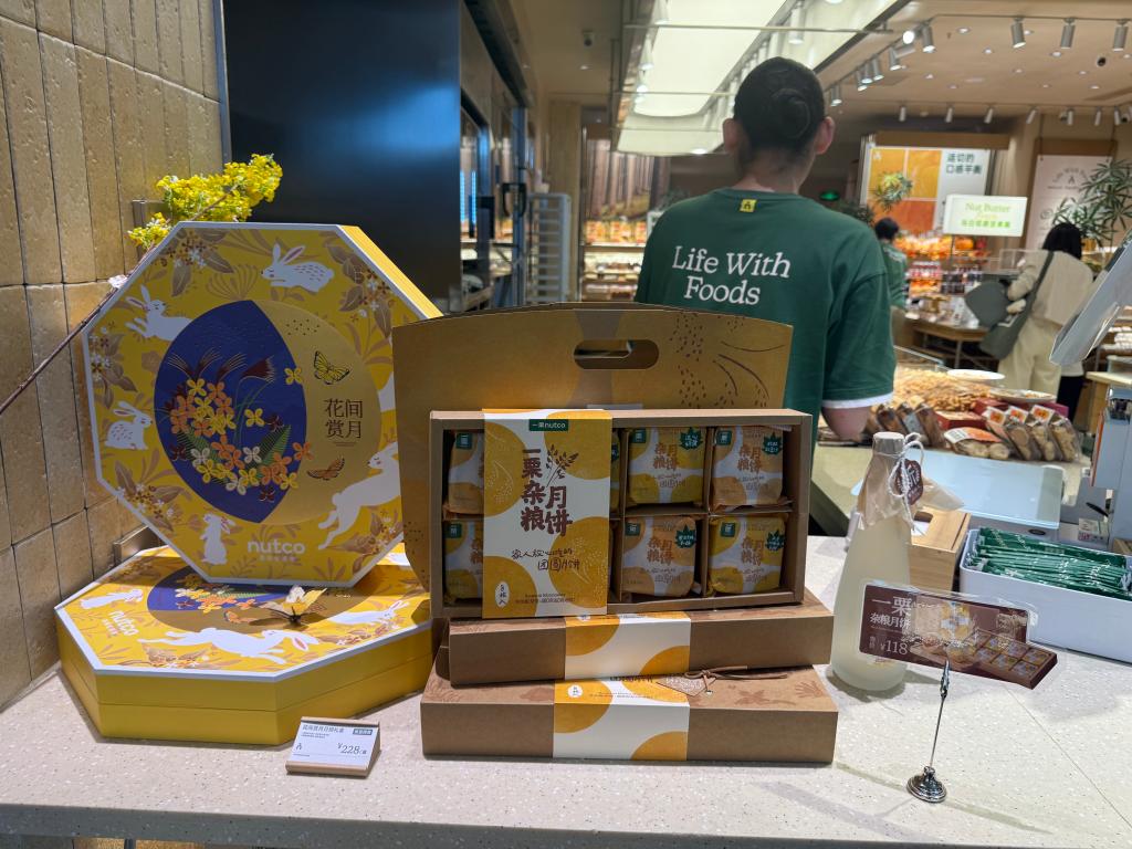在沈陽市渾南區一家門店中,雜糧月餅被擺放在顯眼位置。新華社記者 洪可潤 攝
