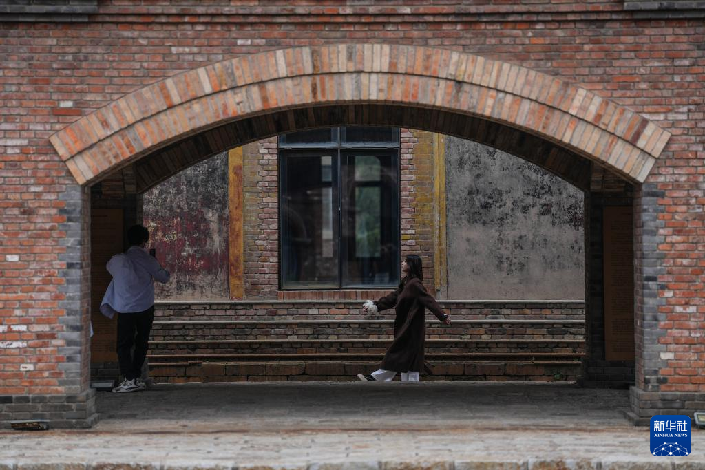 10月6日,游客在沈陽奉天工廠文創園內拍照。