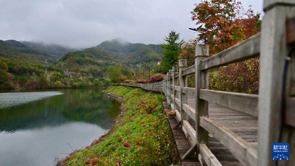 近日,遼寧省丹東市寬甸滿族自治縣的天橋溝景區迎來秋季楓葉觀賞期,滿山秋色吸引游客前來觀景游玩。