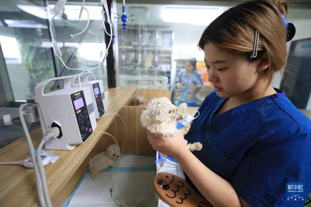 11月7日,在鞍山市鐵西區一家寵物醫院,工作人員照顧生病的小狗。