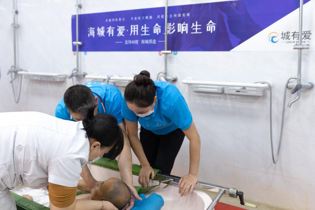 新華網沈陽11月25日電 “平時自己行動不便,今天能徹底泡個澡,渾身清爽。孩子們有耐心,還陪我聊天,特別感謝?!币蚣膊е孪掳肷戆c瘓的王大爺說。近日,“樂齡陪伴·為困境老人上門助浴”項目團隊攜帶專業設備,來到遼寧海城市海西新城社會福利中心,為30名特殊困難失能老人提供了個性化助浴服務。