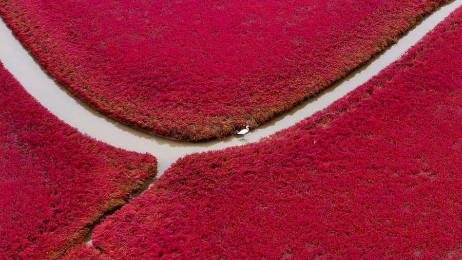 云瞰盤錦紅海灘:一望無際的“紅色海洋”