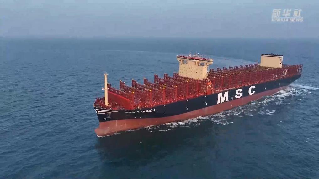 1月8日,我國自主研發建造的液化天然氣(LNG)雙燃料1.6萬標箱集裝箱船“卡梅拉”輪在大連交付。