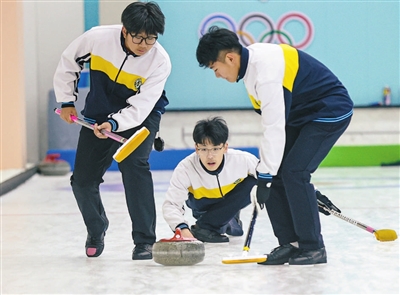 "人群年輕化 項目多樣化 市場多元化沈陽冰雪運動消費煥發新活力在沈陽市朝鮮族第一中學冰壺館,學生正進行冰壺訓練。"